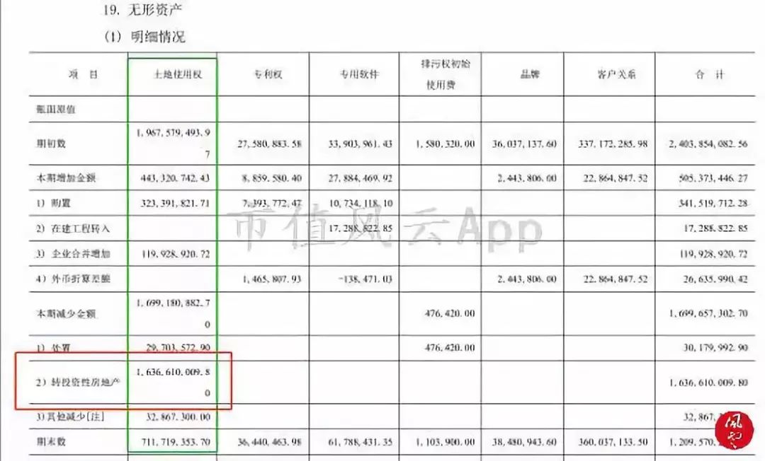 回归主题,咱们是来找隐形资产的,那继续顺着投资性房地产来看:从无形资产、固定资产转来的土地使用权、建筑物以及新增的已出租部分,是隐形的吗?