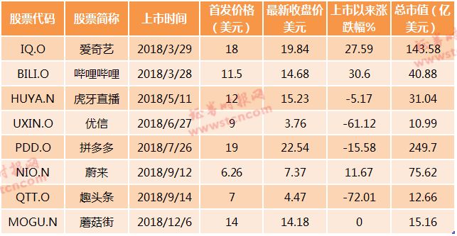 赴美上市的企业也好不到哪去,除了爱奇艺、哔哩哔哩、蔚来汽车以外,其余个股股价均出现下跌,其中趣头条自上市以来股价跌幅达到72%,优信股价跌幅达到61.12%。
