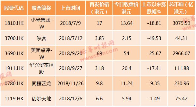 值得一提的是,腾讯参股的赴港上市公司自上市以来股价均出现下跌状态,其中映客跌幅最大,达到49.53%,接近腰斩;美团点评自上市以来跌幅为25.67%;小米、华兴资本股价跌幅分别为18.81%、17.41%。