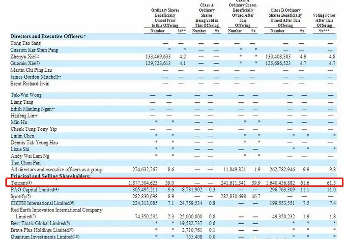以下为腾讯参股的赴美上市公司明细单: