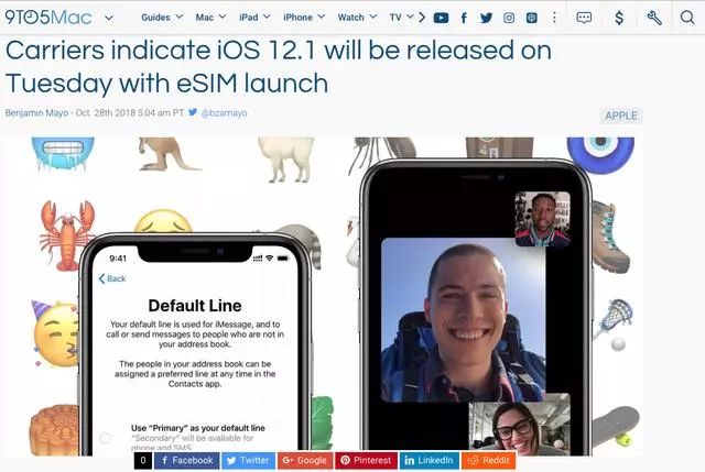 2018年12月6日,苹果发布新版iOS 系统,最引人关注的优化就是终于能够通过eSIM功能使用双SIM卡了。