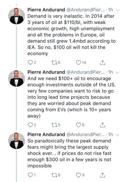 投资信心的极度膨胀,推动安杜兰德在4月底发布了那条著名的推特——300美元的油价不是“没可能” 。