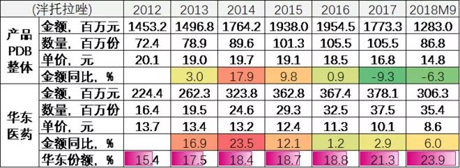 因为基层和药店缺乏权威数据源,而华东医药的放大倍数持续扩大,因此PDB数据对华东医药整体销售情况的参考精确性不如海正药业和丽珠集团——但对于我们理解公司核心产品的来龙去脉,仍然是有价值的参考。