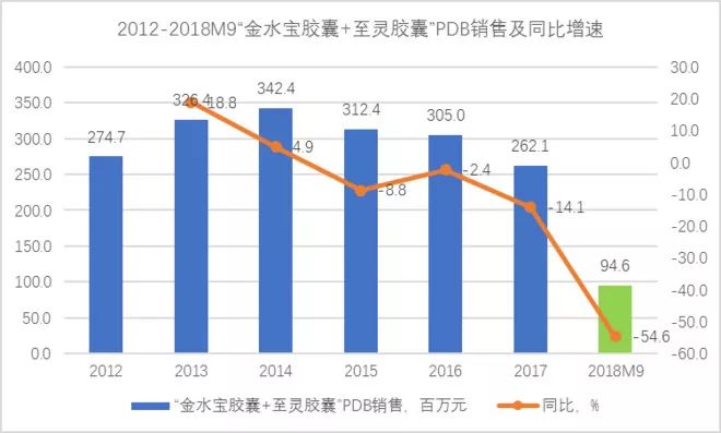 不过,2018年前9月“金水宝胶囊+至灵胶囊”合计PDB销售只剩0.95亿,同比大幅下滑54.6%,但与此同时,华东医药报表端的营收增速也出现了下滑。