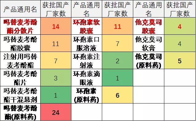 3. 他克莫司格局很好目前为止未看到潜在新增搅局者,吗替麦考酚酯潜在竞品较多,未来有一定的强制降价带来的政策风险,环孢素介于两者之间。