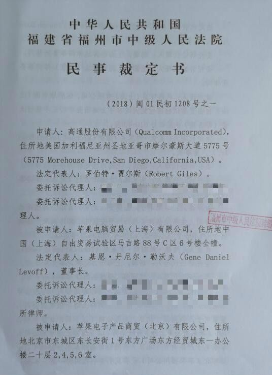 高通诉苹果民事裁定书曝光