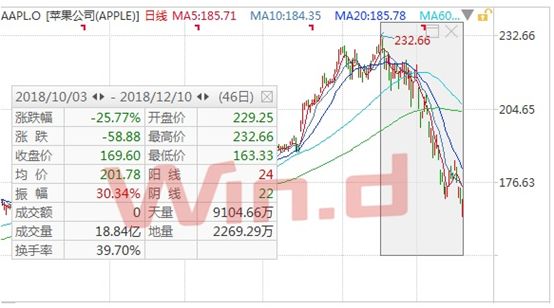 随着高通与苹果之间纷争不断,苹果公司股价近两个月大幅下跌,今年以来,苹果股价相较10月高点已经下跌约25%,万亿市值蒸发约2000亿美元。最近一次财报上,苹果已经宣布以后不再公布各项产品各自的营收情况。