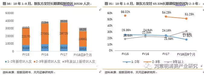 在新东方烹饪长期课程新培训人次构成中,2-3年课程占主体(占比65.33%,到达历史低点),对应新培训19951人次。