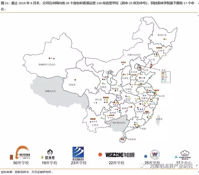 欧米奇学校从FY17开始由17所增加至18年1-8月的19所;美味学院从FY17开始由6所增加至18年1-8月的17所。