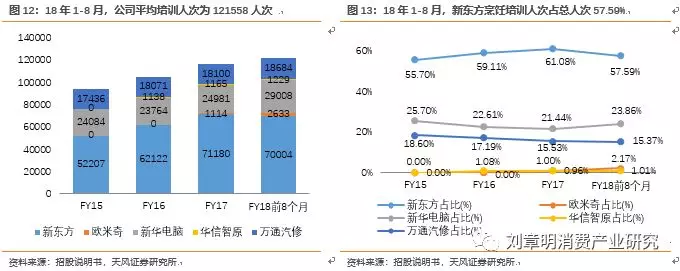 平均培训人次数等于各月份培训人次数之和除以月份数。18年1-8月公司月平均培训人次达到12.16万人次,较FY15的9.37万人增长29.78%,成为推动营收大幅增长的核心驱动力。