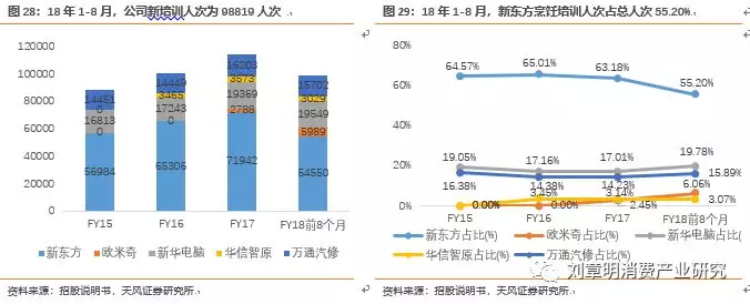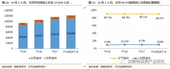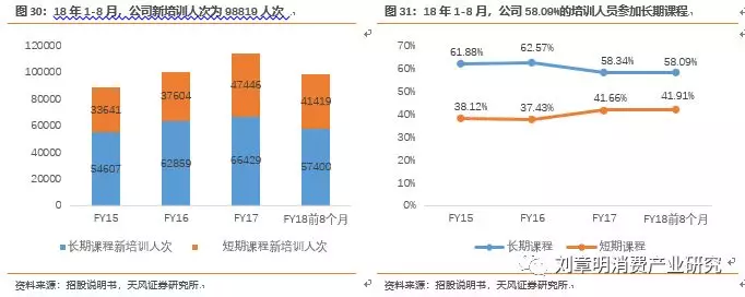 新培训人次代表首次接受公司旗下各学校培训的人次数,18年1-8月公司新培训人次数为98819人次,较FY15的88248人次有较快增长。