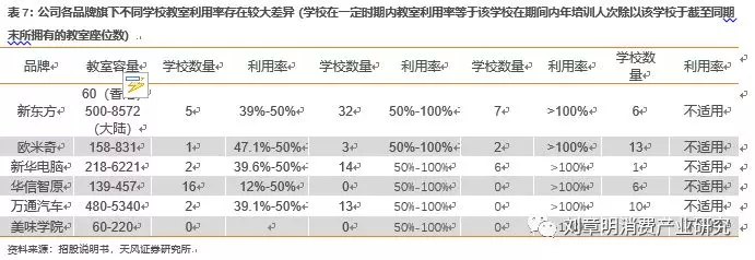 公司各品牌旗下不同学校的教室利用率存在较大差异,具体如下表所示: