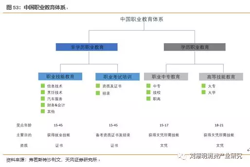 中国职业教育体系一般分为学历职业教育和非学历职业教育。非学历职业教育提供就业所需的知识及技能培训,但不会授予学位或学历证书;而学历职业教育会在完成教育后授予学生学历证书。非学历职业教育主要包括职业技能教育和职业考试培训,学历职业教育包括职业中专教育及高等职业教育。根据上述定义,公司的业务涉及的是非学历职业教育中的职业技能教育。
