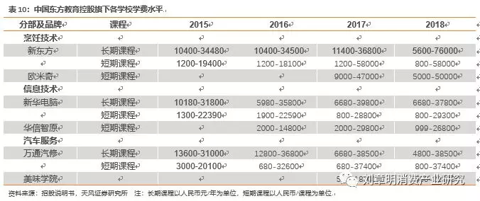 其中,新东方烹饪收入12.32亿,占比60%,同比增长11.6%,主要是由于学费费率有所提高及更多学生报读了长期课程(该等课程收取更高的学费费率)。长期课程的学费费率从截至17年1-8月11400元至36800元增至截至2018年1-8月5600元至76000元。