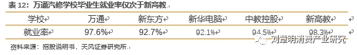 这些努力的直接体现就是公司旗下各学校毕业生良好的就业率。截止2018年8月末,万通汽修学校毕业生引荐就业率高达97.6%,超过我国职教龙头中教控股94.5%的水平;新东方烹饪学校、新华电脑专修学校的毕业生引荐就业率也分别达到92.7%、92.1%。考虑到引荐就业率仅仅包括通过毕业生就业服务计划而受聘的长期课程学生总数,并不包括自己创业或通过其他渠道而就业的学生,实际的就业率会更加理想。