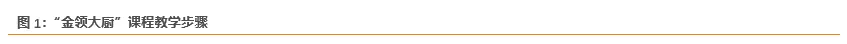 为了紧跟餐饮业的演变趋势、满足餐饮市场的需求,新东方烹饪已经开发出独特的教学方法,包括实训教学五大步骤、分模块教学法及理实一体化教育等。在课堂中,富有经验的教师将提供一对一的指导及实践教学,注重开发学生的实践技能、技术知识及职业素养。以“金领大厨”课程为例,教学步骤如下:
