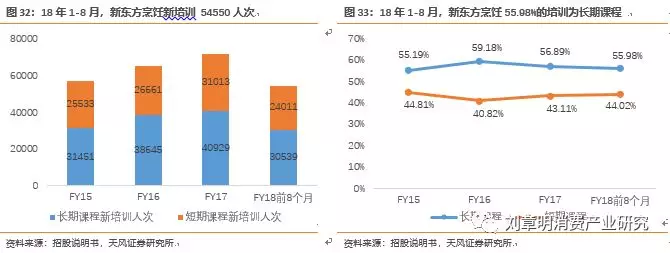 通过计算可以发现中国东方教育控股旗下各学校长期课程客户留存率90%以上,显著高于同期短期课程。