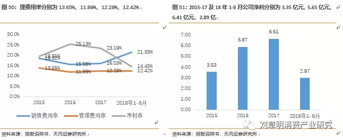 2015-17及18年1-8月公司净利分别为3.35亿元、5.65亿元、6.41亿元,2.89亿元;净利率分别为18.33%、24.19%、22.49%、14.06%。
