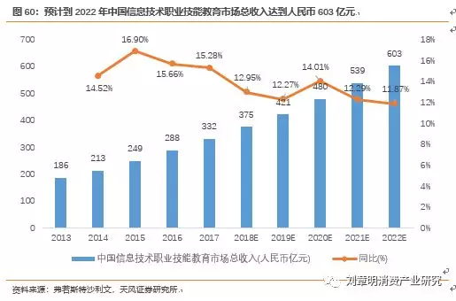 受益于互联网和云计算、大数据、区块链、虚拟现实及人工智能等新技术的普及、信息技术领域工作要求日益提高导致许多信息技术专业的学历教育学生没有所需的适用就业技能;再加上中国政府的政策支持,信息技术职业技能教育市场目前处于发展期。根据弗若斯特沙利文报告,信息技术职业技能教育市场的总收入从2013年186亿元增长至2017年332亿元,预计到2022年将达到603亿元。