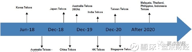韩国运营商(如SK电信、KT Corp和LG U+)完成了3.5 GHz和28 GHz频段的频谱购买;