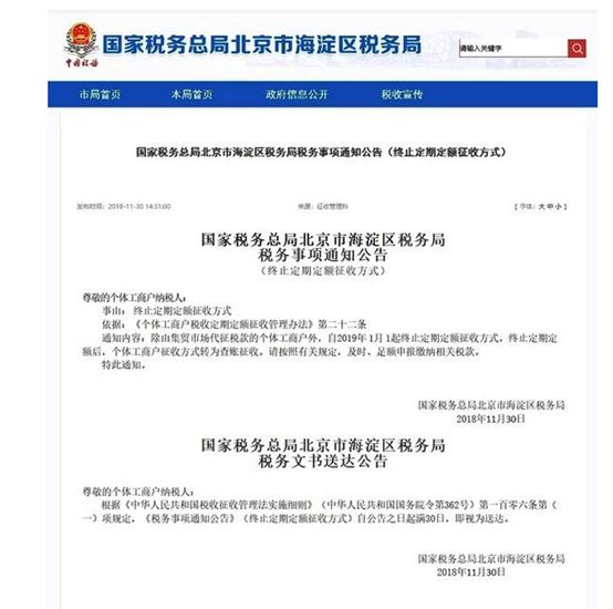 最近有则消息,北京市海淀区税务局规定,个体户自2019年 1月 1日起终止定期定额,转为查账征收。