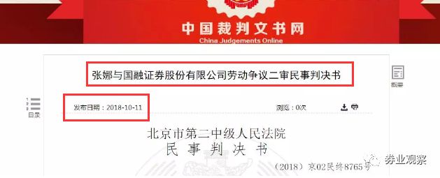近日,中国裁判文书网披露了,女员工张娜与国融证券劳动争议再审审查与审判监督民事裁定书。