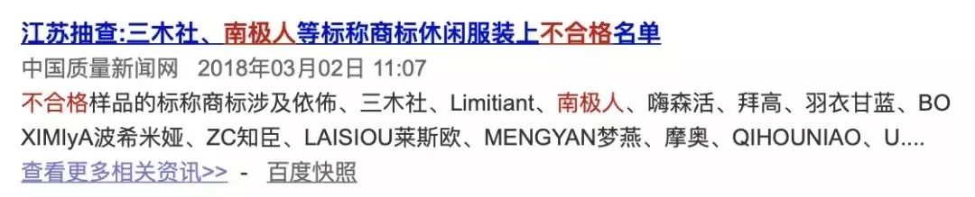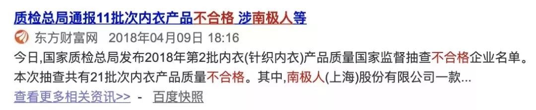 2018年截至目前,南极人已经上了14次国家质监部门及地方消费者协会的不合格产品黑名单,从蚕丝被、内衣、棉服、童装、冲锋衣到电推剪、卷发器、按摩棒,其均有产品上质检黑榜。其中有五次是原国家质检总局、现国家市场监督管理总局进行的国检。