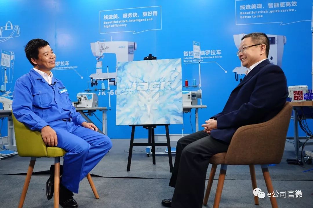 (证券时报副总编辑成孝海(右)对话杰克股份创始人阮积祥)