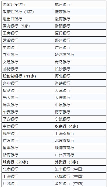 2018年最新一级交易商中银行名单如下所示: