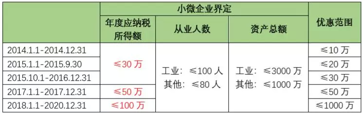 从2014年至今,小微企业所得税处理如下表所示: