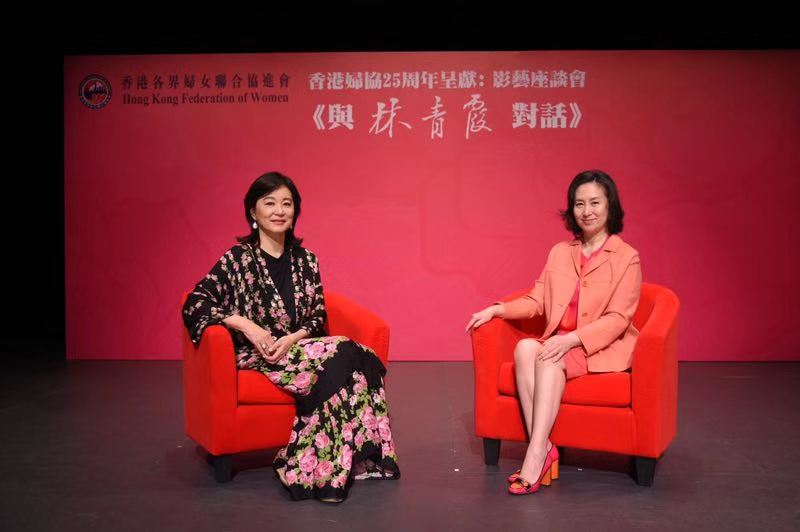 今年5月,在香港妇联成立25周年之际,作为主席,何超琼和林青霞展开了一场主题为“影艺事业与人生”的对话,何超琼身着橙色套装,丝毫不逊于坐在身边的“第一美人”林青霞,她说,“每部电影作品都有女主角,不论她们参与的是台前还是幕后的工作”。