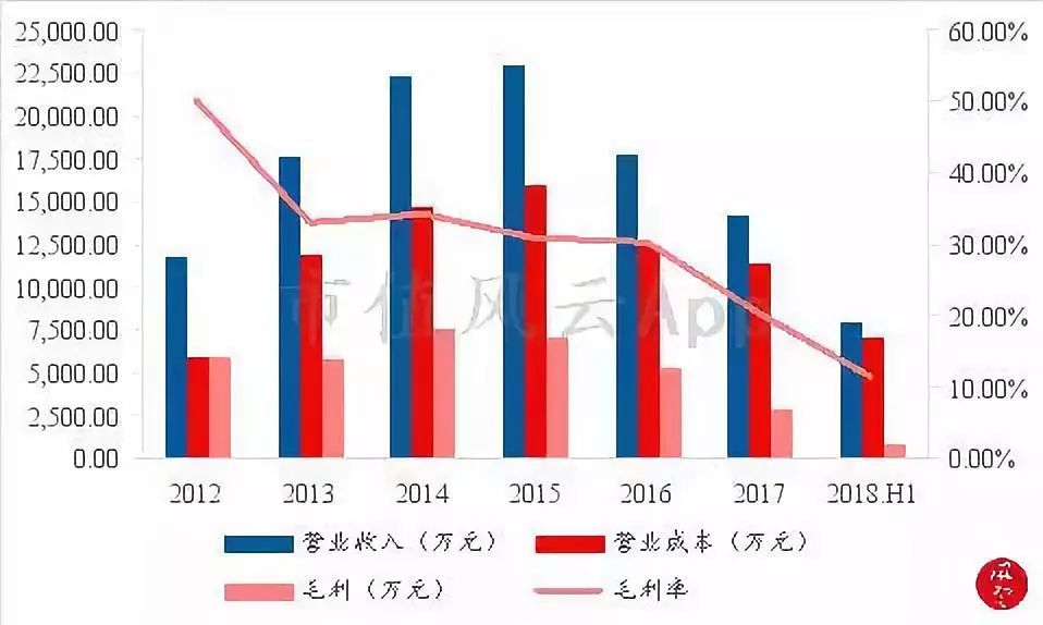 可以清晰地看到,公司通信业务营收从2015年以后开始就呈下降趋势,从2015年的2.30亿元下降至2017的1.42亿元;毛利率总体上也呈下降状态,2018年上半年毛利率更下降到11.13%,通信业务毛利率的持续走低表明通信业务的竞争力在持续下滑。