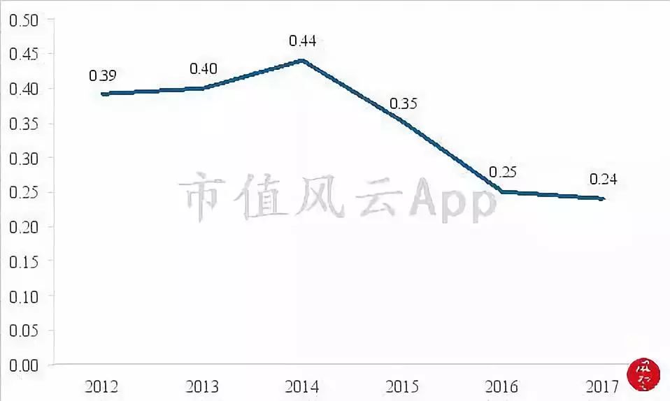 上市以来,公司的总资产周转率从0.39次下降到2017的0.24次。其中,公司的营收从2012的1.26亿元增长到2017年的5.30亿元,增长了约4.22倍,总资产从4.46亿元飙升到23.97亿元,增长了约5.37倍。