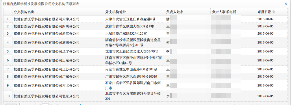 此外,记者从商务部直销行业管理网查阅到权健自然医学科技发展有限公司属于直销企业,具有直销经营许可证,根据官网报备有10个销售区域,上海并不在其中。