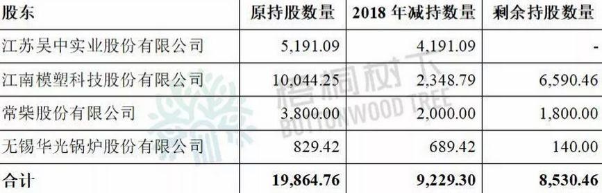 以上公司均是江苏银行上市前的法人股东,2018年累计减持18,461.66万股,占公司流通股比重3.07%。其中,包括四家上市公司——江苏吴中实业股份有限公司、江南模塑科技股份有限公司、常柴股份有限公司和无锡华光锅炉股份有限公司。