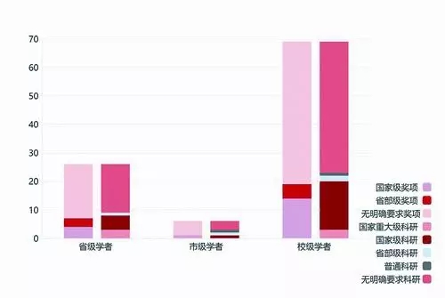 除去“长江学者”为国家级教育部直属外,其他学者计划分为省级、市级、校级和基金会管理四个层次。