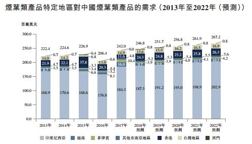 中烟国际(香港)在招股书中预计东南亚市场对中国烟叶类产品的需求将继续上涨,同时表单数据也显示东南亚地区中,印度尼西亚对中国烟叶类产品的需求最旺盛。