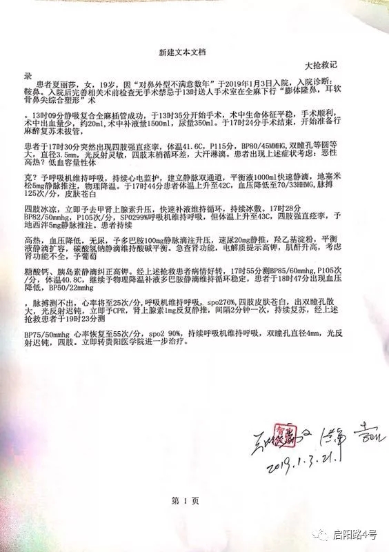 1月3日,新年的第三天,贵州19岁女大学生夏丽莎在整形医院接受隆鼻手术时出现意外,手术后却意外身亡。夏丽莎的亲属悲痛欲绝,他们怎么也想不明白,为什么一个隆鼻手术会让小夏香消玉殒?