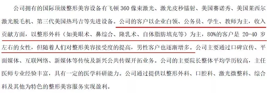 利美康的客户以企业白领、公务员、学生、教师为主,其中80%的客户是20-40岁左右的女性。不过利美康表示,随着人们对整形美容接受度的提高,男性客户也逐渐增多。