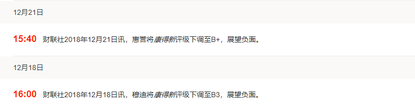 除新世纪评级之外,国际评级机构穆迪和惠誉也曾于2018年12月下调康得新的主体评级,其中穆迪给康得新的最新主体评级为B3,展望为负面;惠誉将康得新评级下调至B+,展望负面。