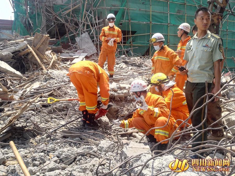 8月22日下午6点半左右,四川省南充阆中市七里新区一商住楼工程在浇筑混凝土时,发生支模架垮塌事故。当时,王友均和另外几名工人正站在楼顶浇筑混凝土,但脚下的支模架毫无征兆坍塌了。截止目前,坍塌事故已造成6人死亡,4人受伤。目前所有伤亡人员家属已经全部核实通知到位,部分伤亡人员的家属已赶到医院,其余人员家属正在赶来途中。图为经过现场挖掘,救援人员发现失踪者尸体。来源/四川新闻网