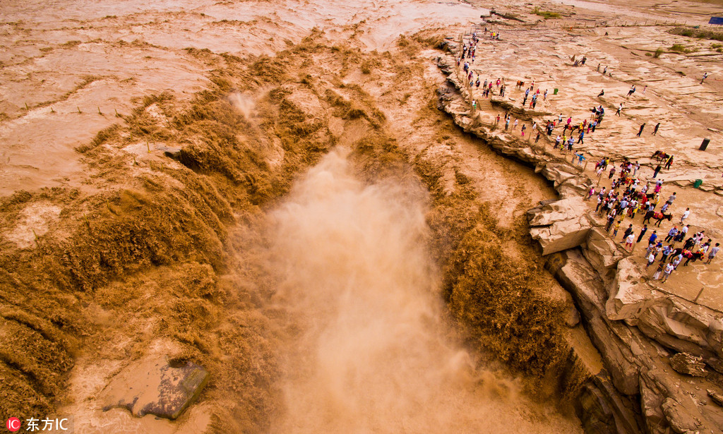 近日,受黄河上游地区强降雨影响,山西黄河壶口瀑布形成壮观的瀑布群,空中俯瞰蔚为壮观。来源:人民网 钮一新