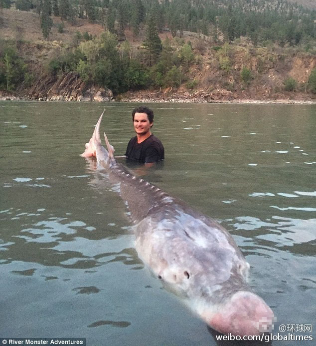 加拿大男孩捕获80岁580斤重“猪鼻”鲟鱼