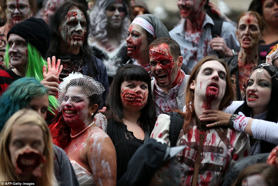 每日邮报8号报道,英国一个慈善组织为了为无家可归的流浪汉筹集资金,在世界僵尸日这天装扮成丧尸在伦敦街头游行,以引发社会公众的关注。