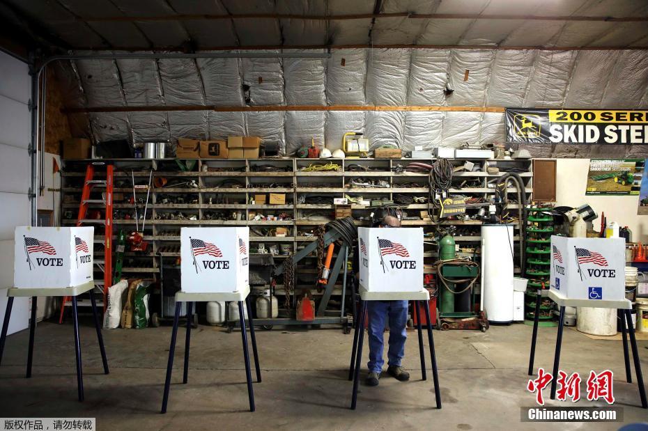 当地时间11月8日,美国迎来大选日,众多民众开始进行投票,而在这其中,有很多“奇葩”的投票站。图为爱荷华州民众在一处车库内进行投票。中新网