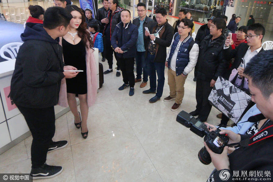 11月12日,山东省济南市,《新金瓶梅》中潘金莲的扮演者龚玥菲为某皮草商城站台,众多粉丝簇拥,排队与她自拍,十分热情。