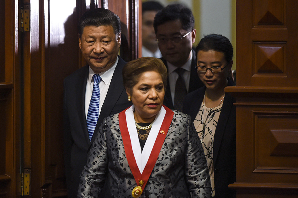 2016年11月22日报道,当地时间21日,习近平在秘鲁国会接受了国会主席萨尔加多授予的“大十字勋章”。