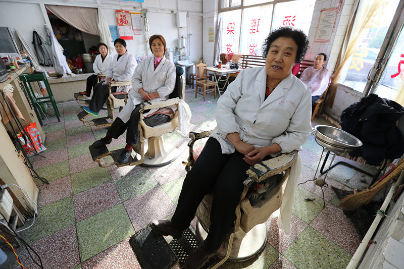 12月23日,山东省济南市梁南理发店。四位理发师袭普兰、宴吉莲、刘素华、李玉芹,三十多年的光阴让她们从年轻的小姑娘,变成了六旬老人。店里没变的是那些传统老家伙什儿和剃头匠们精湛的手艺及热情的服务态度。
