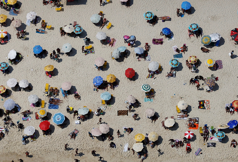 巴西民众扎堆海滩 享受南半球热辣夏日