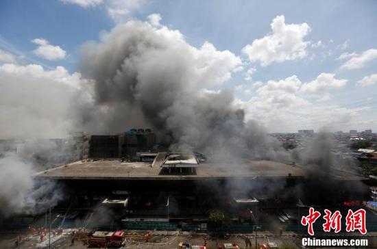 印尼雅加达一市场发生火灾 浓烟直冲天空